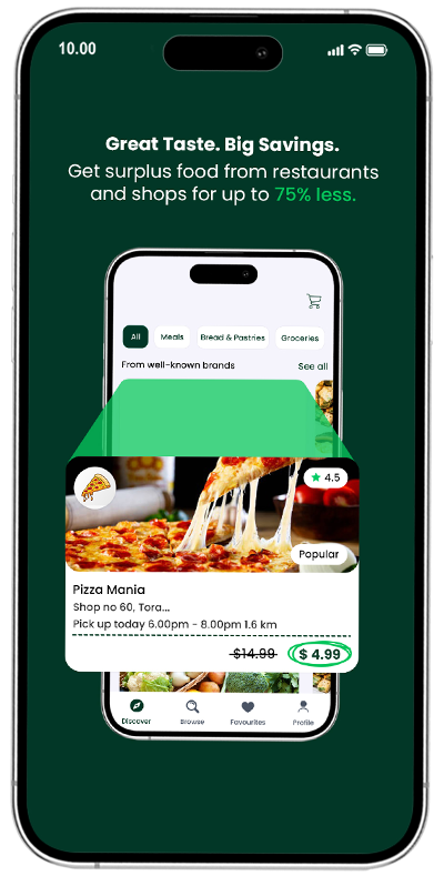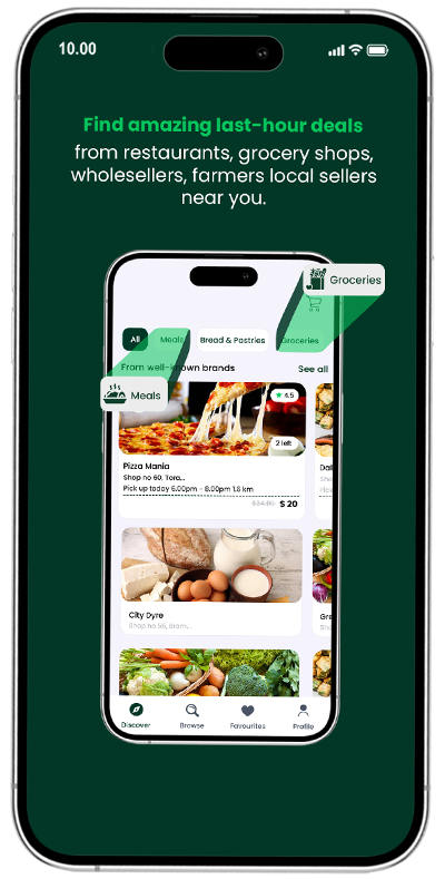 Get restaurant-quality food and groceries from trusted local businesses at up to 80% off, all while making a real environmental impact.